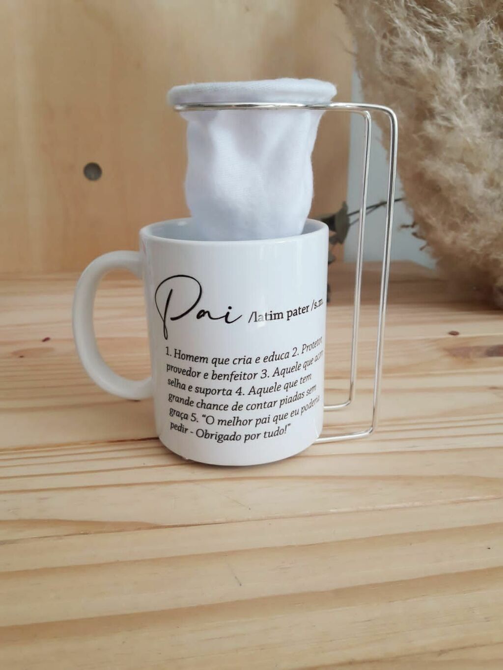 Caneca em cerâmica branca, 325ml.Companha Mini coador em tecido.Personalizamos com a foto a ser enviada por email, e o nome ou dizeres a escolher.